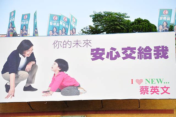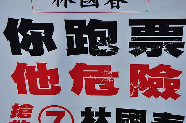 因此,像這樣的用字遣詞在每個候選人的競選旗幟及海報上都出現...
