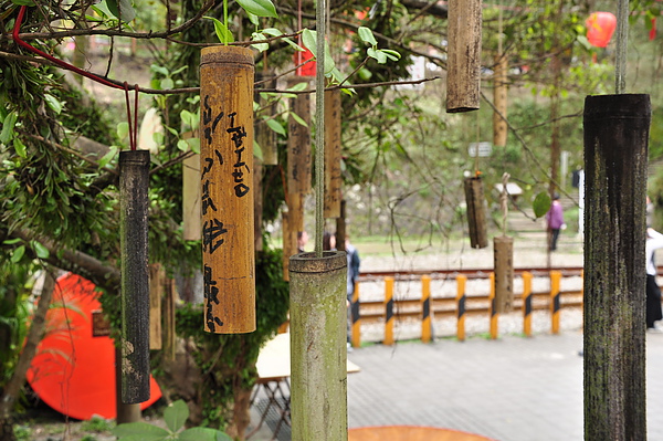 就在月台邊,有著一個掛滿許願竹筒的地方